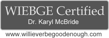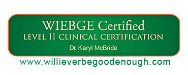 The WIEBGE acronym stands for "Will I Ever Be Good Enough?" and signifies certification in Dr. Karyl McBride’s five-step recovery model for treating adult children of narcissistic parents.